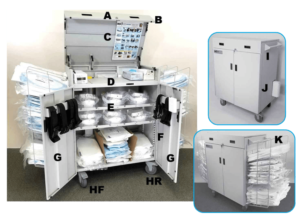 – HF front wheels swivel 360° for convenient parking, lock forward for traveling.