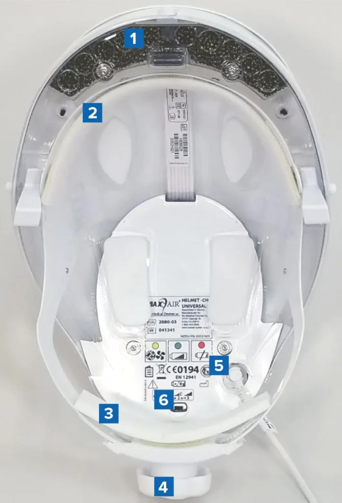 All five LEDs are shown on as is the case each time the Helmet is powered on.