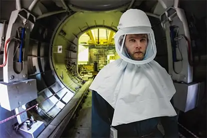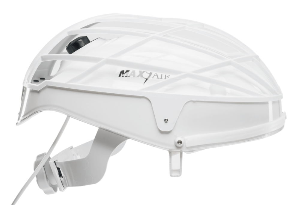 The MAXAIR integrated Helmet places the motor-fan, filter, and all electronics in the Helmet. This eliminates the two most disliked components of most conventionally designed PAPRs.